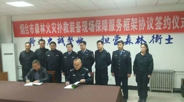 2017年2月28日,烟台市森林消防技能大比武暨地空配合灭火演练活动在莱山区界牌村港城东大街北侧空地举行。 活动设新型森林消防装备展示、授旗仪式、地空配合灭火演练、比武竞赛项目(负重越野、水泵接力与撤收)4项内容。省森林防火指挥部办公室副主任、省森林公安局局长刘得,市政府副秘书长董锐,莱山区区长孙玉荣,交通部北海第一救助飞行队党委书记姜力军,市林业局局长孙树福等出席活动现场。比武包括各区县,共15个队伍,参加人数300人左右,山东绿友森防公司应邀参加了森林防火装备现场展示,并在当日下午3点应邀参加了烟台市森林公安局正式签订成为森林火灾装备现场保障服务单位。